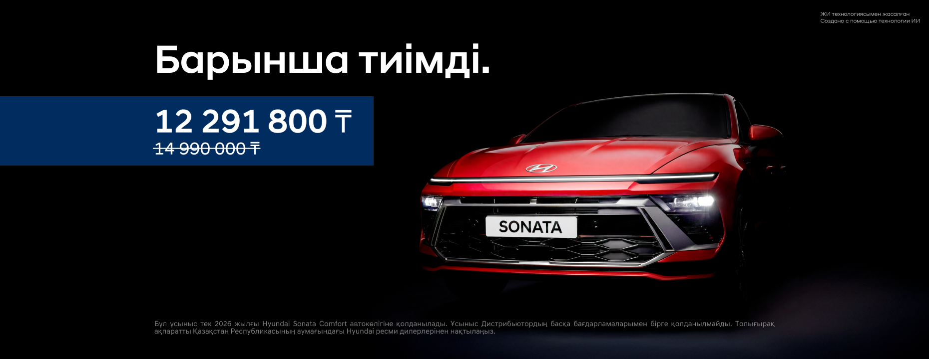 | Sonata | 12 291 800 ₸ бастап | 2 983 500 ₸ дейін |